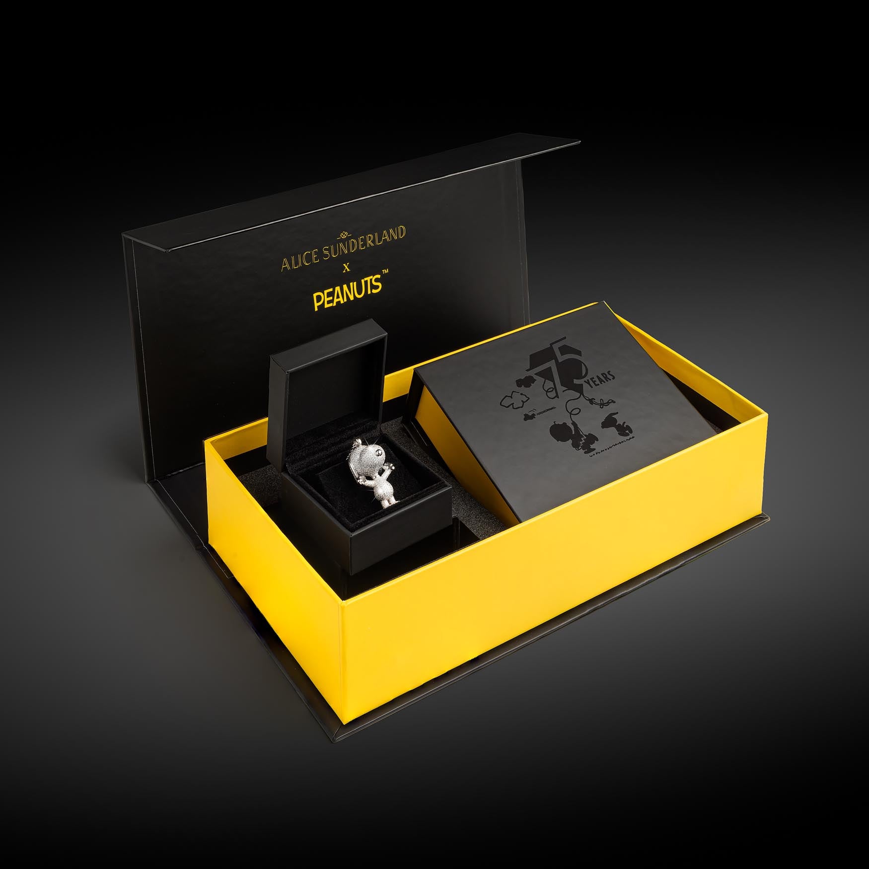The gold version is not limited and was created to mark Snoopy’s 75th anniversary. Snoopy’s raised hands add a light and playful touch, a gentle wink to this special celebration. It brings a joyful energy to the design.